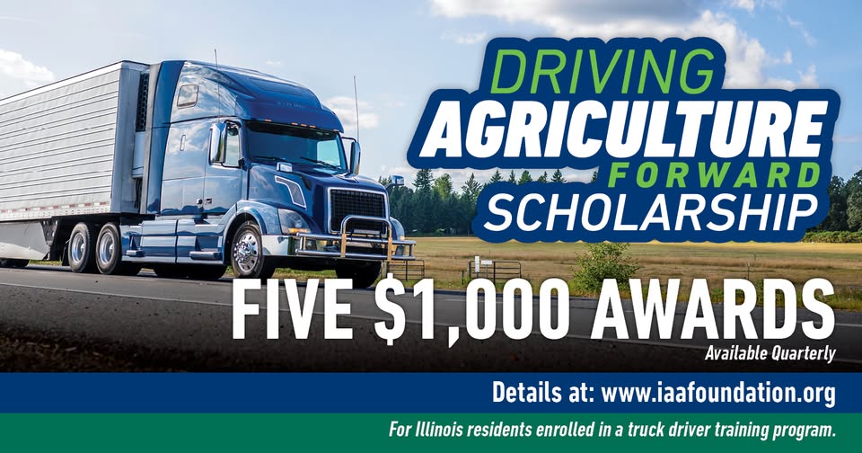 The IAA Foundation, in partnership with the Illinois Farm Bureau, is offering twenty $1,000 scholarships to individuals enrolled in a Truck Driver Training program at an Illinois Community College.